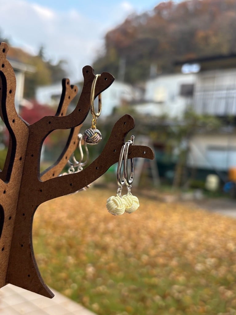 薄鼠 × 白 — 玉結びピアス